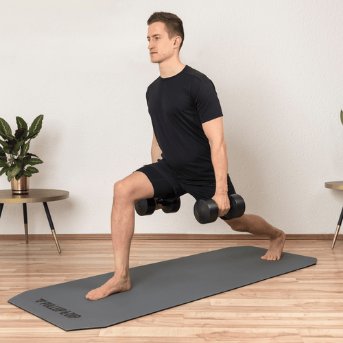 Notre tapis de sport à deux couches de Pullup & Dip ® vous offre la surface d'entraînement parfaite pour vos exercices de Poids corporel, yoga, HIIT, Pilates, corde à sauter ou autres. Assurez une expérience d'entraînement des plus confortables grâce aux deux couches : Le cuir synthétique PU sur le dessus est résistant à l'abrasion, au glissement, à la transpiration et offre une surface d'entraînement parfaite. Le matériau de rembourrage en TPE sur la face inférieure vous offre un rembourrage doux et respectueux des articulations et est également antidérapant afin que votre tapis de sport ne glisse pas pendant votre entraînement.