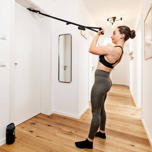 ✔️ Entraîne-toi de manière 100% flexible où tu veux : à la maison sur des portes et des barres de traction, dans une chambre d'hôtel, à l'extérieur sur des arbres, des poteaux, des buts, des poutres ou en voyage avec un montage sur un camping-car. Il n'y a pas de limites à la fixation !
