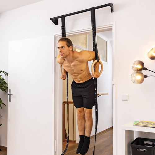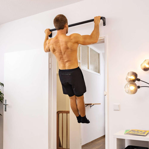 Notre barre de traction à fixer au mur au-dessus du cadre de porte est la base parfaite pour ton entraînement à la maison. Grâce à sa construction stable, tu peux effectuer une multitude d'exercices - de la traction classique aux compétences calisthéniques les plus exigeantes.