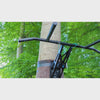 A : L'arbre devrait avoir un diamètre maximal de 70 cm, car la sangle de serrage a une longueur totale de 2,5 m. Tu obtiens ainsi une circonférence de 220 cm et tu as encore 30 cm de sangle à tendre. De plus, l'arbre doit avoir un diamètre d'au moins 15 cm et être le plus droit possible.